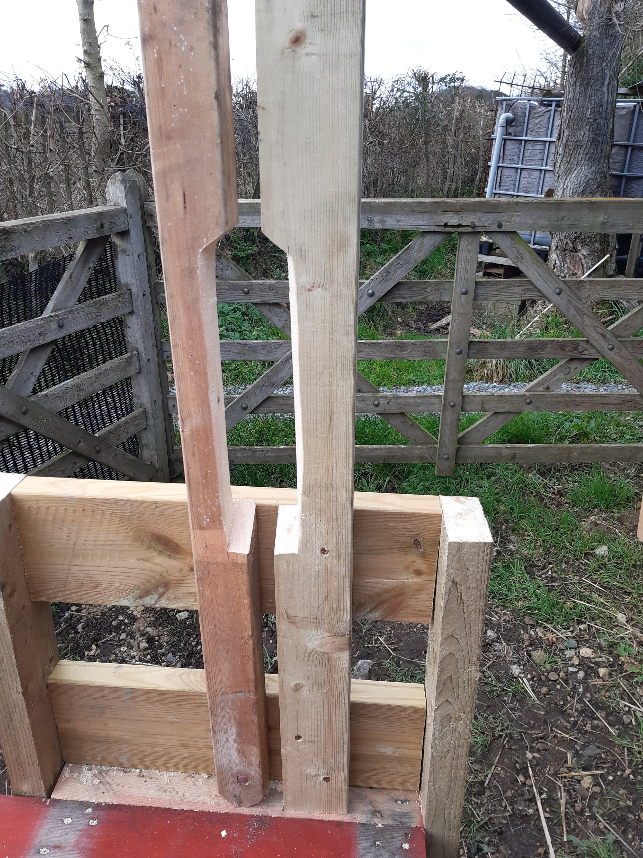 10 Creating the head yoke from two pieces of wood. The final shape will be determined by the size of your goats.