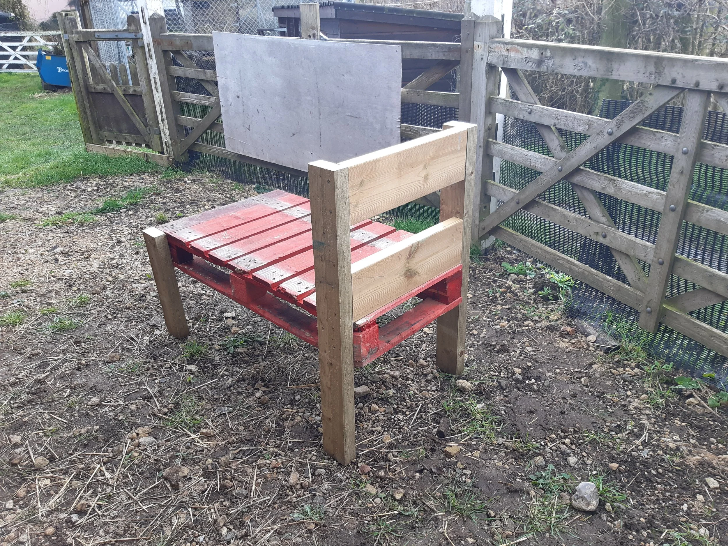 02 A suitable pallet showing the centre internal support. This will form one side of the milking stand base.